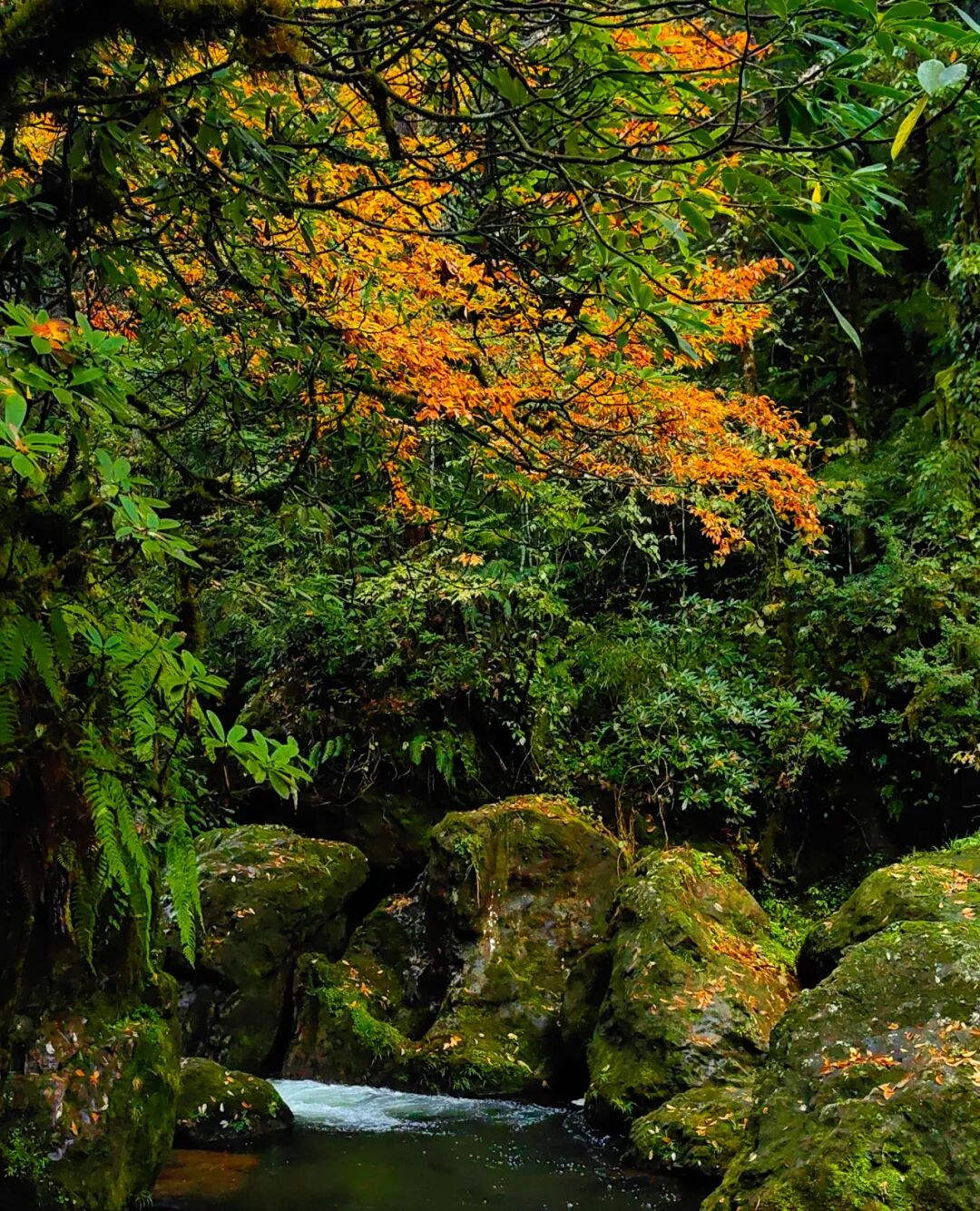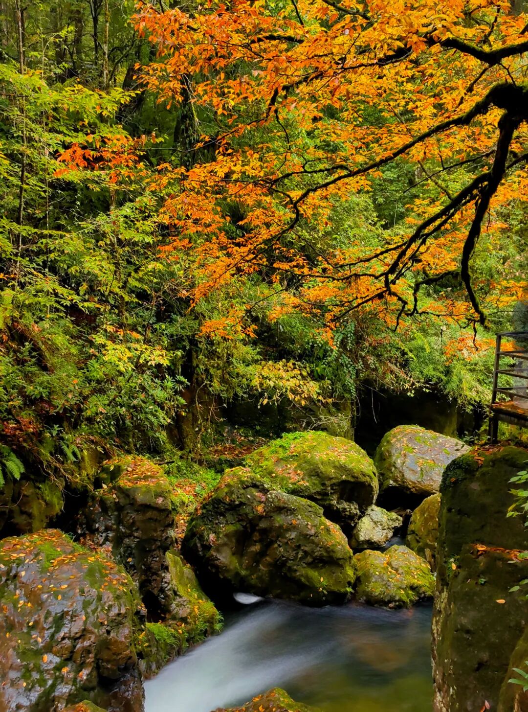 疊翠溪的步道沿著溪流修建,我們一路逆流往上,這里映入眼簾的秋,更像是一首流動的詩!